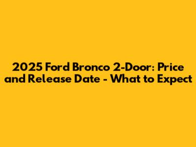 Hey there, off-road enthusiasts! Are you stoked about the 2025 Ford Bronco 2-Door and itching to know about its price and release date? You're not alone! The Bronco has made a massive comeback, capturing the hearts of adventurers and daily drivers alike. Let’s dive into what we can expect from the 2025 Ford Bronco 2-Door, covering everything from potential pricing to the anticipated release timeline and all the cool features that might come along for the ride. Ford has really outdone themselves bringing back this iconic vehicle, and the buzz around the 2025 model is totally justified. Whether you're planning your next big off-road adventure or just dreaming of cruising around town in a stylish and capable ride, the 2025 Bronco 2-Door is definitely one to watch. So, buckle up, and let’s get into the details!