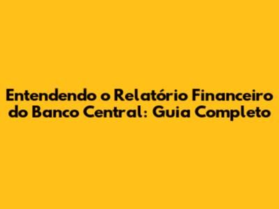 Entendendo O Relatório Financeiro Do Banco Central