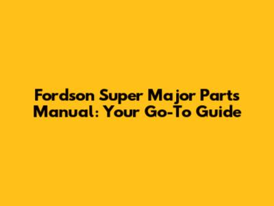 Fordson Super Major Parts Manual: Your Go-To Guide
