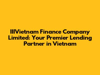 IIIVietnam Finance: Your Go-To Lending Partner