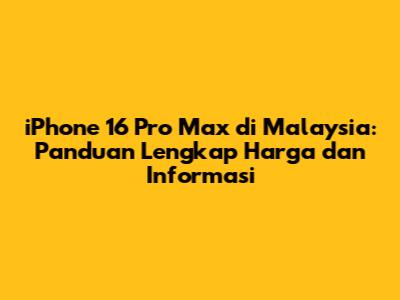 iPhone 16 Pro Max β Guys, jika kalian penasaran banget sama harga terbaru dan informasi seputar iPhone 16 Pro Max di Malaysia, kalian berada di tempat yang tepat! Artikel ini bakal kasih kalian semua yang perlu kalian tahu, mulai dari perkiraan harga, fitur-fitur canggih, hingga tempat terbaik buat membelinya. Jadi, siap-siap buat nge-explore dunia iPhone 16 Pro Max yang keren ini!
