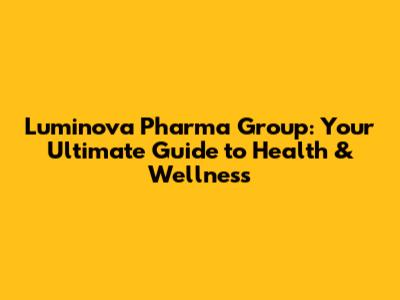 Luminova Pharma Group: Your Guide To Health & Wellness