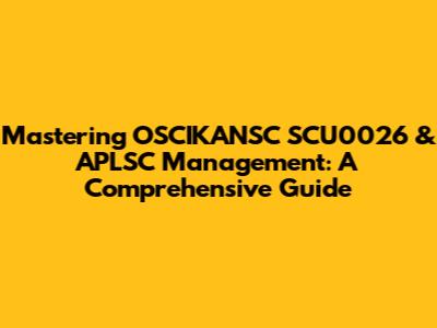Mastering OSCIKANSC SCU0026 & APLSC Management: A Comprehensive Guide