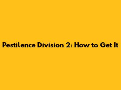 Pestilence Division 2: How To Get It