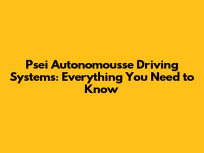 Psei Autonomousse Driving Systems: Everything You Need To Know
