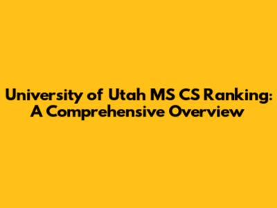 University Of Utah MS CS Ranking: A Comprehensive Overview